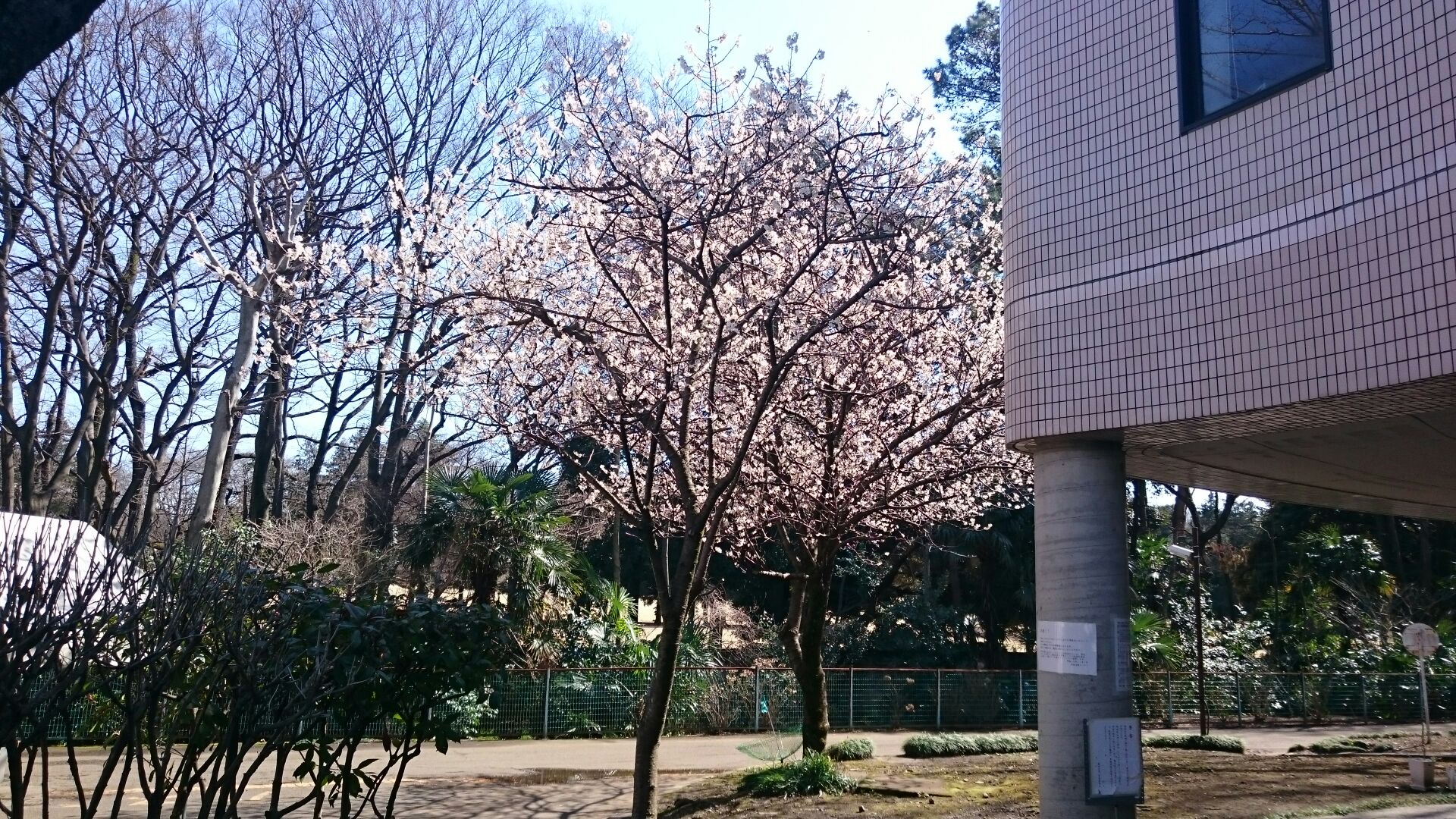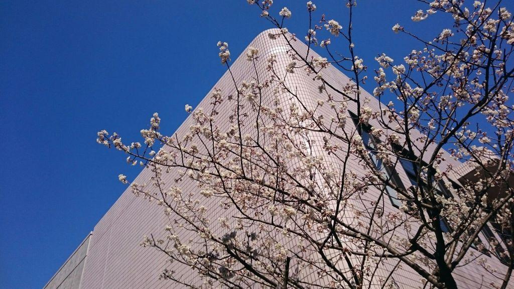 図書館の横にある桜が咲き始めました