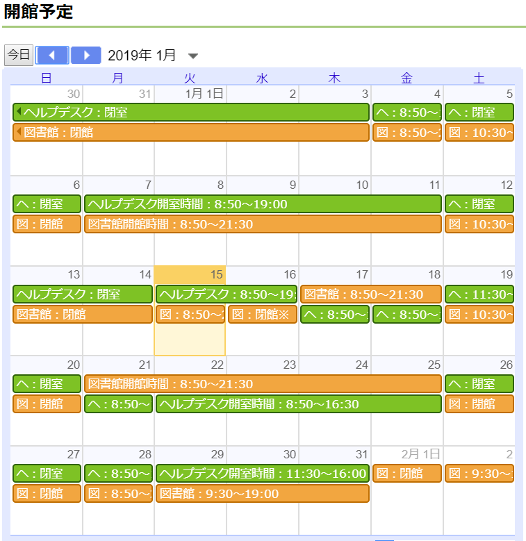 (なお、入試日は学外者利用不可で、日曜日、祝日は閉館となっています。