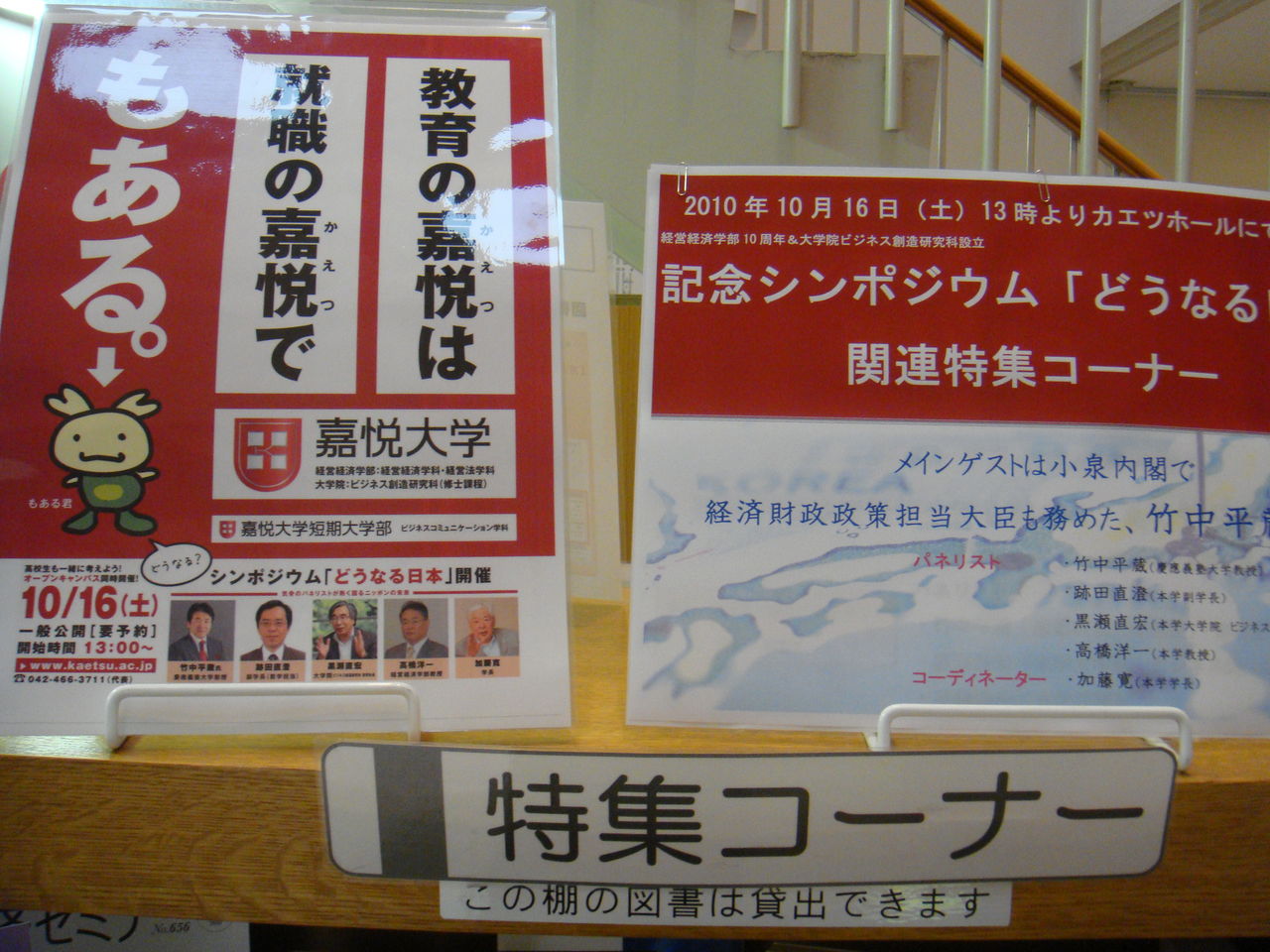 図書館(1階)では、竹中平蔵さんが書かれた本がずらりと並べられています