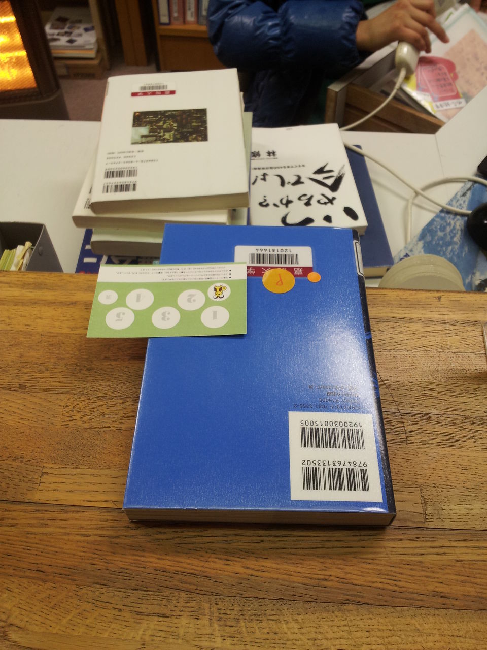 この本のように、後ろのバーコードにPと書かれたシールが貼ってある本が対象の本となります。