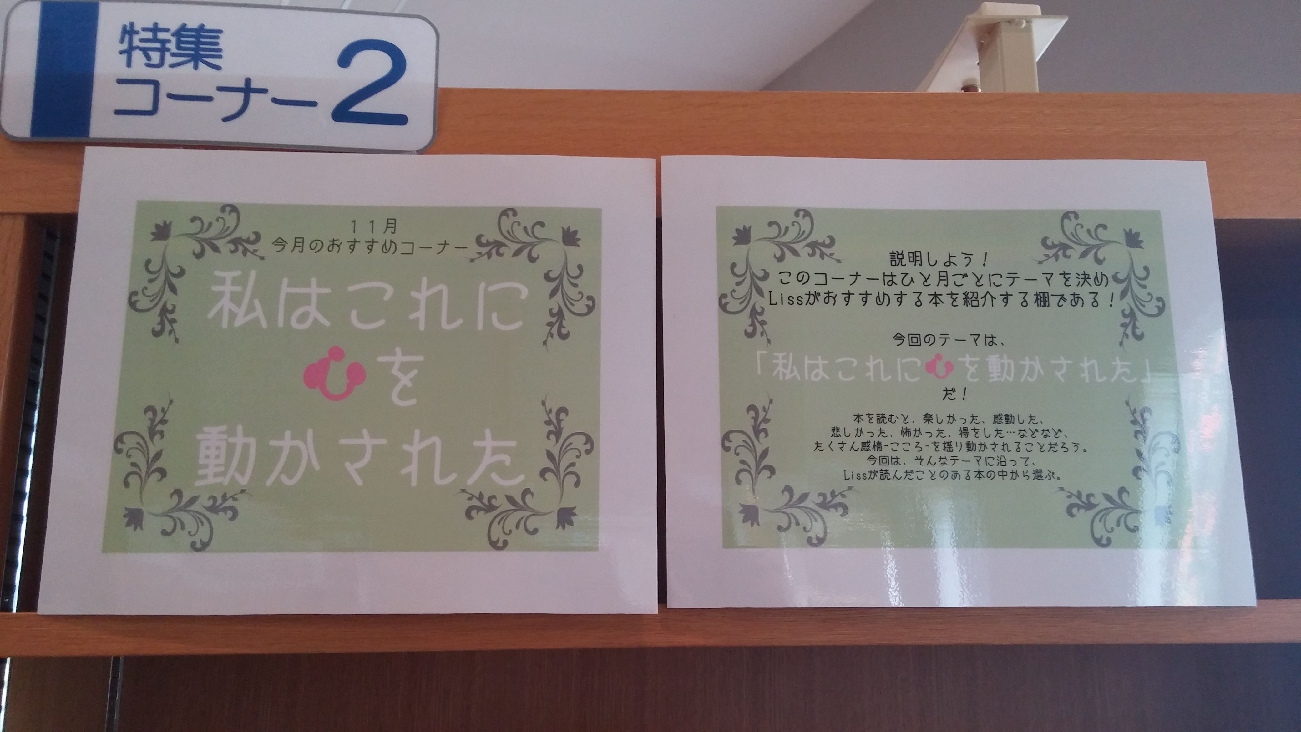 さて、テーマごとにLissが1冊ずつ本を選び、作成する「今月のおすすめコーナー」。